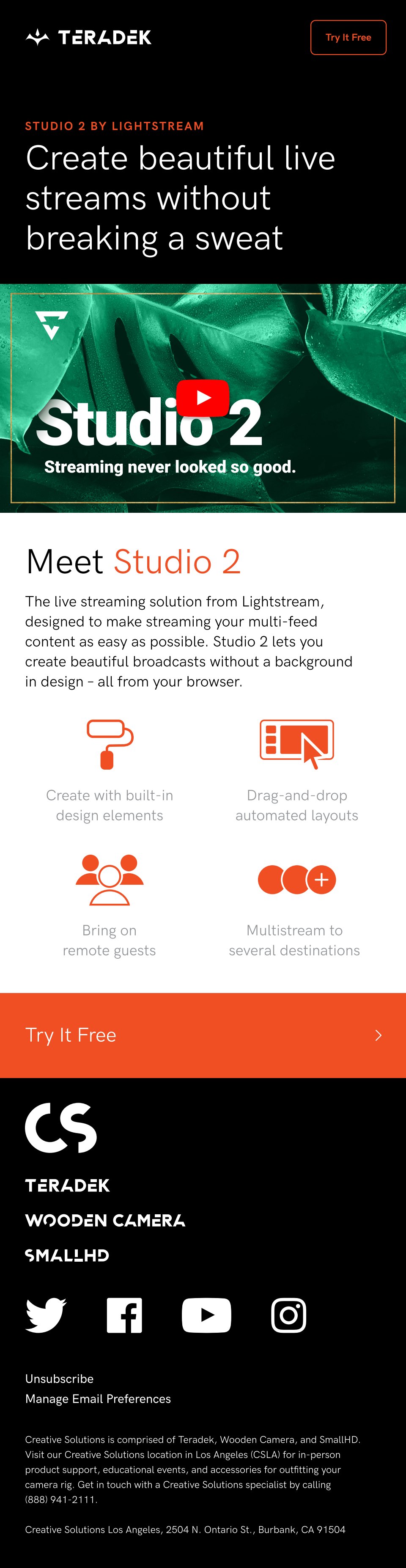 Promo emails for Lightstream, a cloud platform for easily producing beautiful live streaming video.