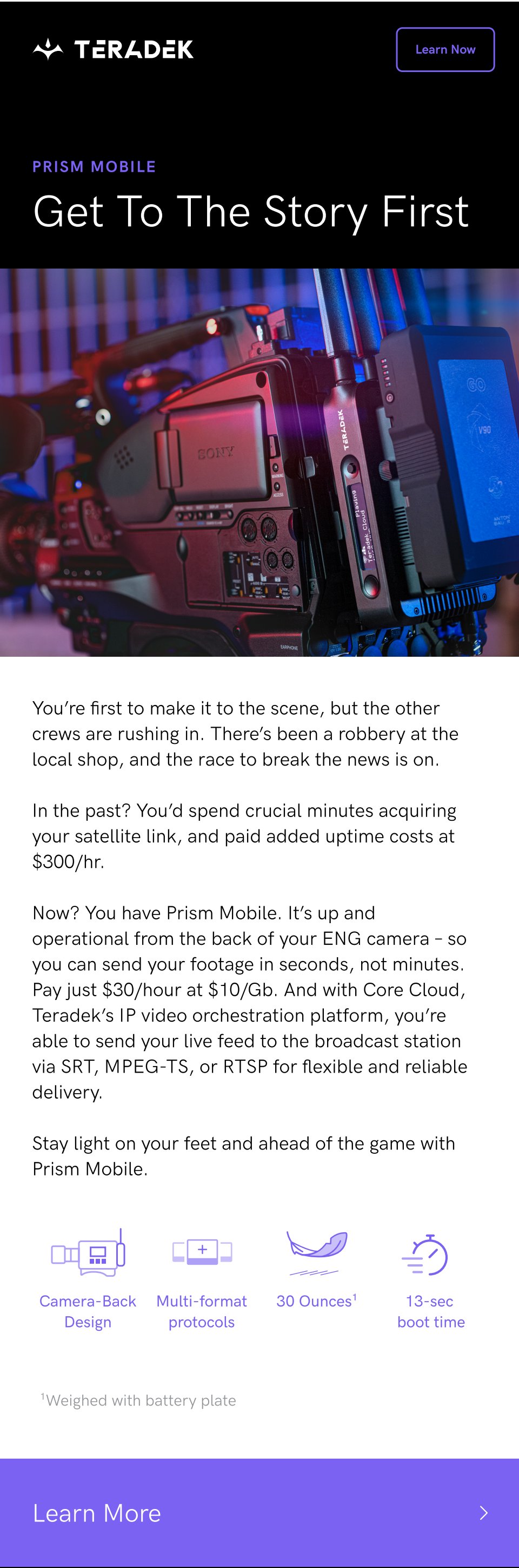 Based on real customer experiences (and pain points), this story-based series of launch emails explains how Prism Mobile does everything your last encoder couldn’t.