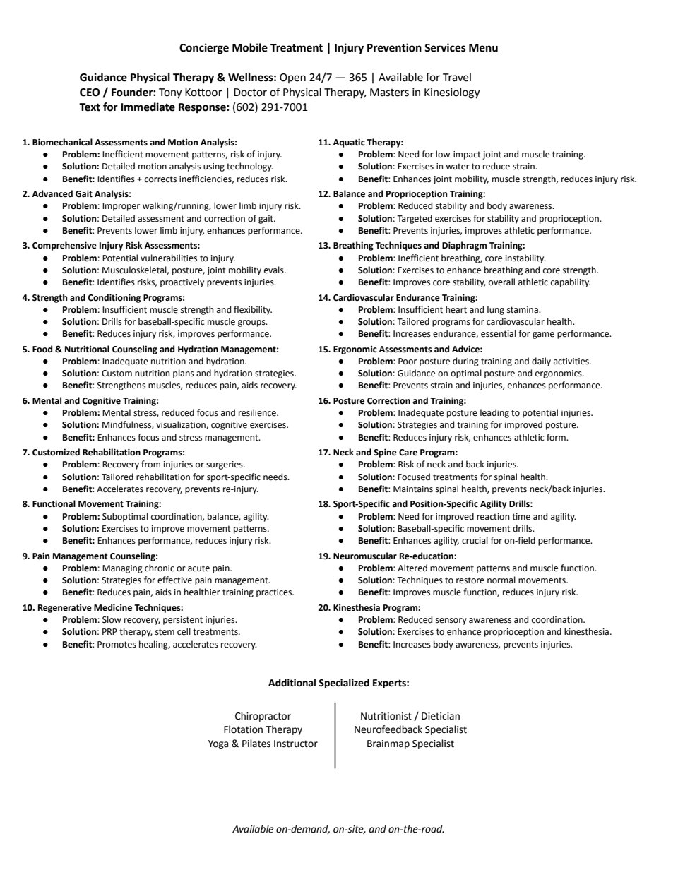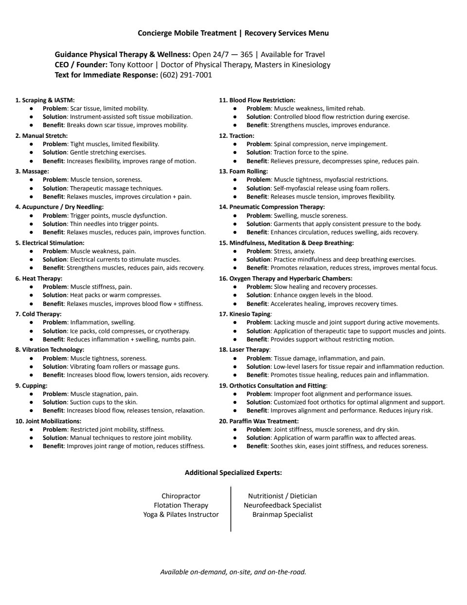 With over 40 services to choose from, Dr. Kottoor’s clients were having trouble knowing which treatment options to select. To simplify their choices, this menu transformed a daunting buffet into a delightful à la carte experience.