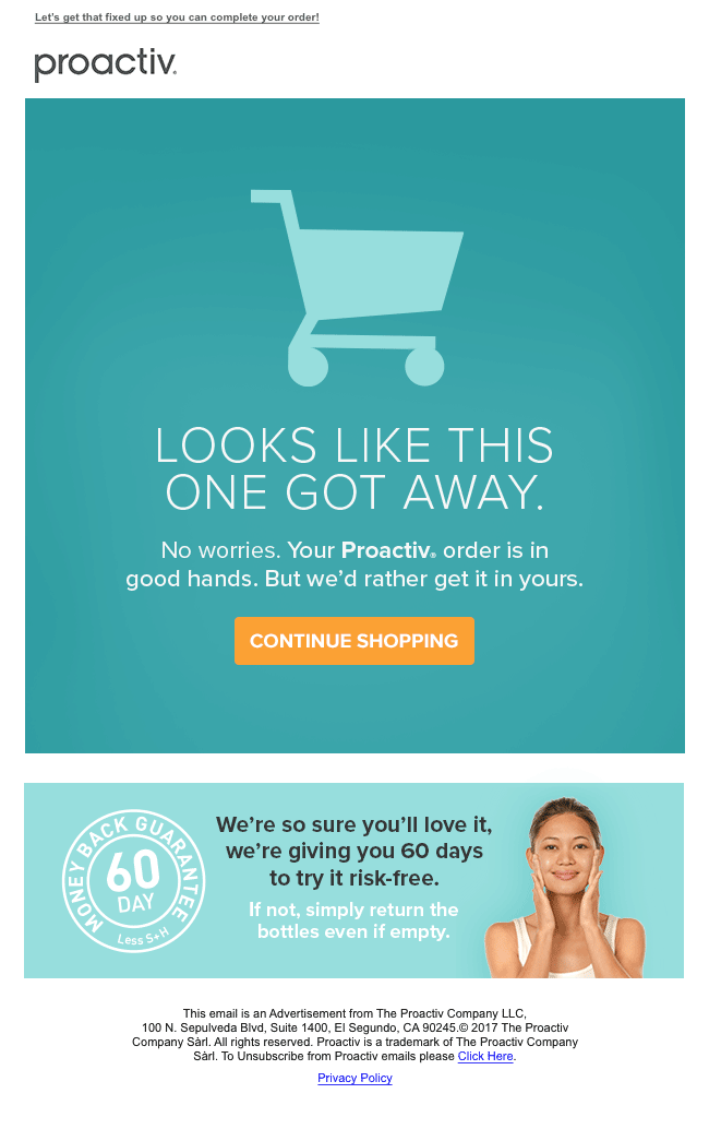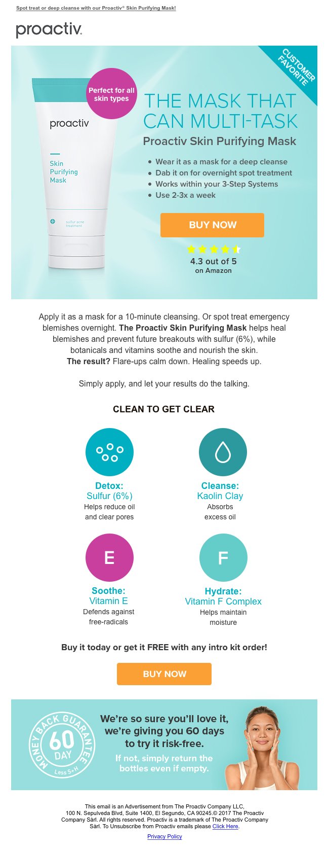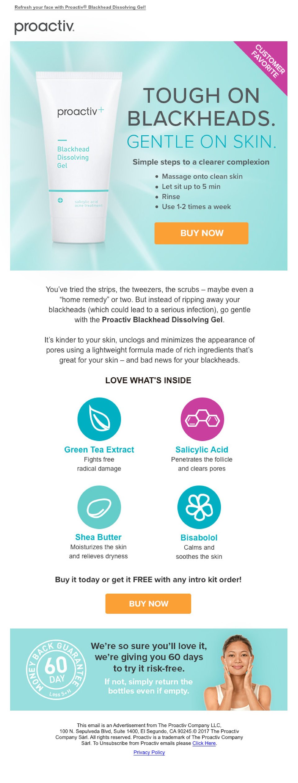 Proactiv’s mission can be boiled down to a single message: We’re here to get you clear™. These emails aim to direct customers down that path.