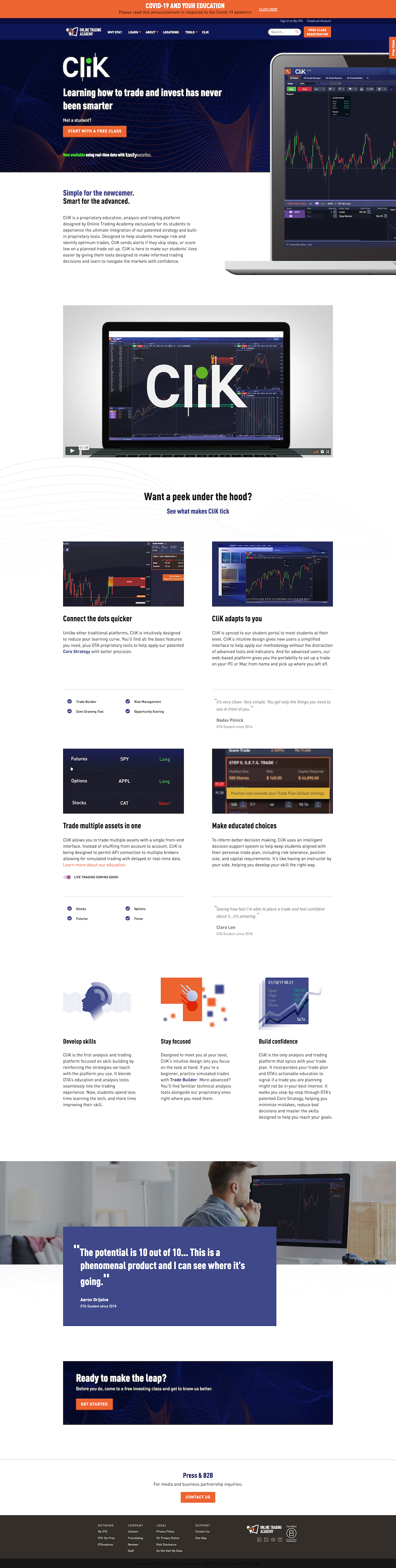 Product page for CliK: OTA’s proprietary trading and analysis platform that reinforces OTA’s education.