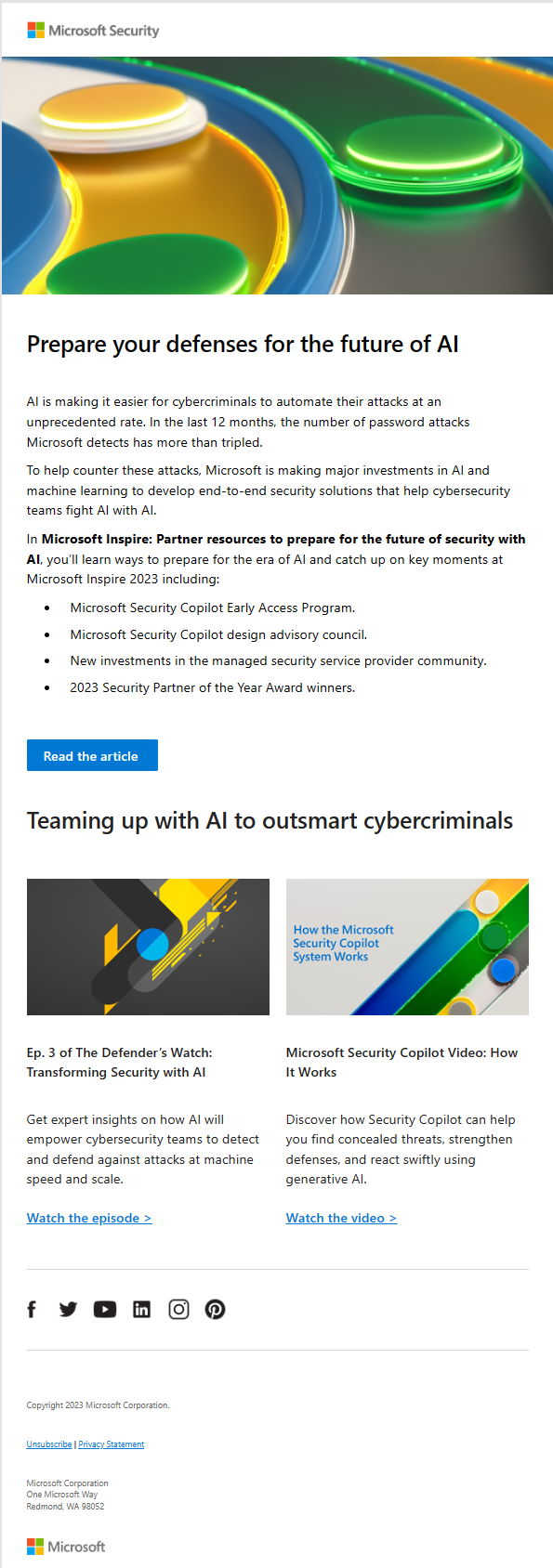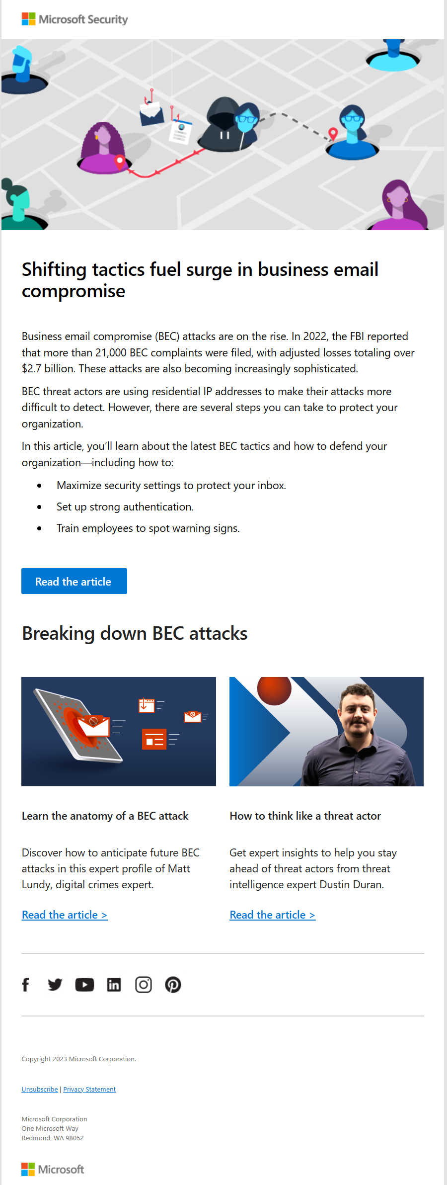 Promo emails for the leader in cybersecurity innovation. Using Microsoft Style Guide and drawing from volumes of testing data, these emails offer essential resources to help IT and security professionals stay on top of today’s sophisticated cyberthreat landscape.